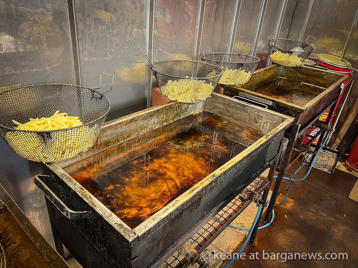The food is served on paper plates with plastic knives and forks and, of course, sachets of tomato ketchup. We enjoyed our fish and chips to the inimitable sound of bagpipes, and I was told that, on certain days, one or two of the fryers may be older gentlemen in kilts. All that was missing was the malt vinegar – we had to make do with a wedge of lemon. – source – Mike McDowall –The Guardian 2010