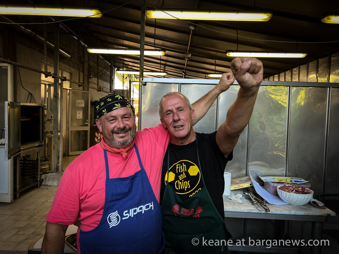 Freshly cooked pasta, grilled steak and sausages were also on the menu but this evening all eyes were on those freshly crisp fried fish and chips that you can only get once a year prepared by the expert hands of the AS Barga cooking team who have now been serving up pesce e patate for 40 years