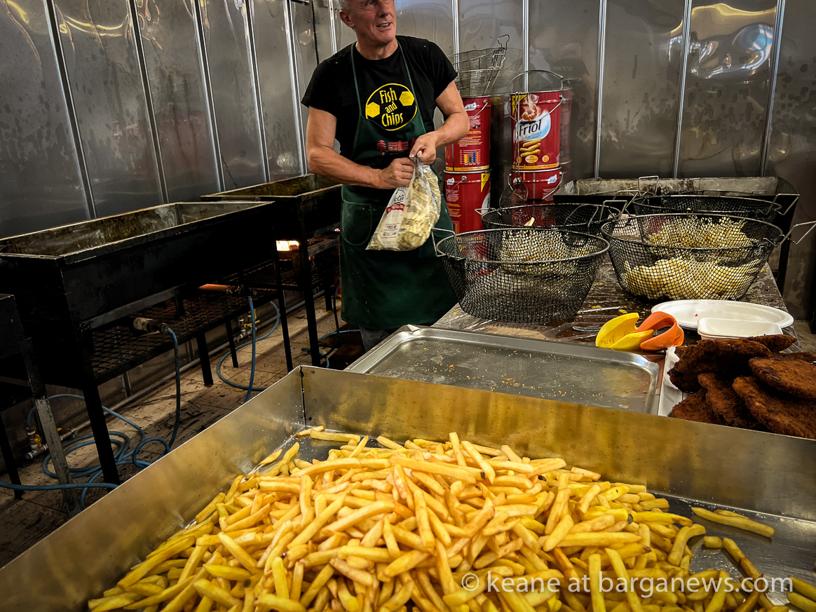 Each day around 500 people sit down to a deep-fried dinner at trestle tables on the sports field. During the festival they munch their way through about a tonne of chips – and even more fish. There’s a huge vat of tomato salad if you feel the need to cut through the grease, and of course, gallons of chianti with which to wash it all down.