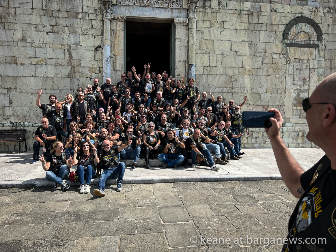 It was difficult to give a precise number to the participating members as they kept arriving and moving around the city. As the president of the club said when asked this morning – the phrase “herding cats” came to mind but finally at the Duomo a large group were kept still long enough for a brief photograph.