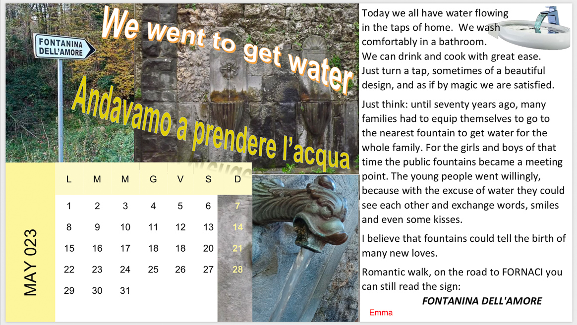 After that, 22 hands produced the 2023 Calendar, the one you are thumbing, made though the computer skills gained by going back to school. We have put in our thoughts, our memories seasoned with satisfied irony, with the wish for the future that it continues to go!
