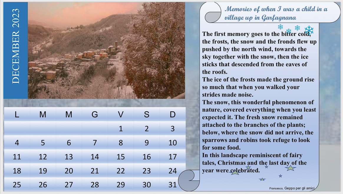 2 Gennaio 2023. I corsi di Informatica Pratica di Unitre Barga continuano a sfornare produzioni che gli Adulti Ancora A Scuola hanno il piacere di condividere col mondo.