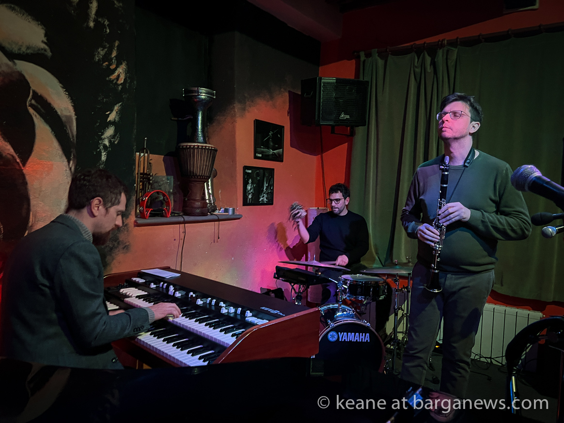 The trio is composed of Michele Marini on saxophones, clarinet, and vocals, Lorenzo Frati on Hammond organ, keyboards, guitars, vocals, and electronics, and Emiliano Barrella on drums, percussion, and electronics.