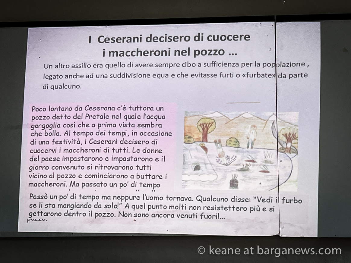The presentation was accompanied by music from The Aristodemo’s, and barganews.com reported that the book finally told the story behind the Rocca di Ceserana and some of the tales about the inhabitants of Ceserana, the Ceserani.