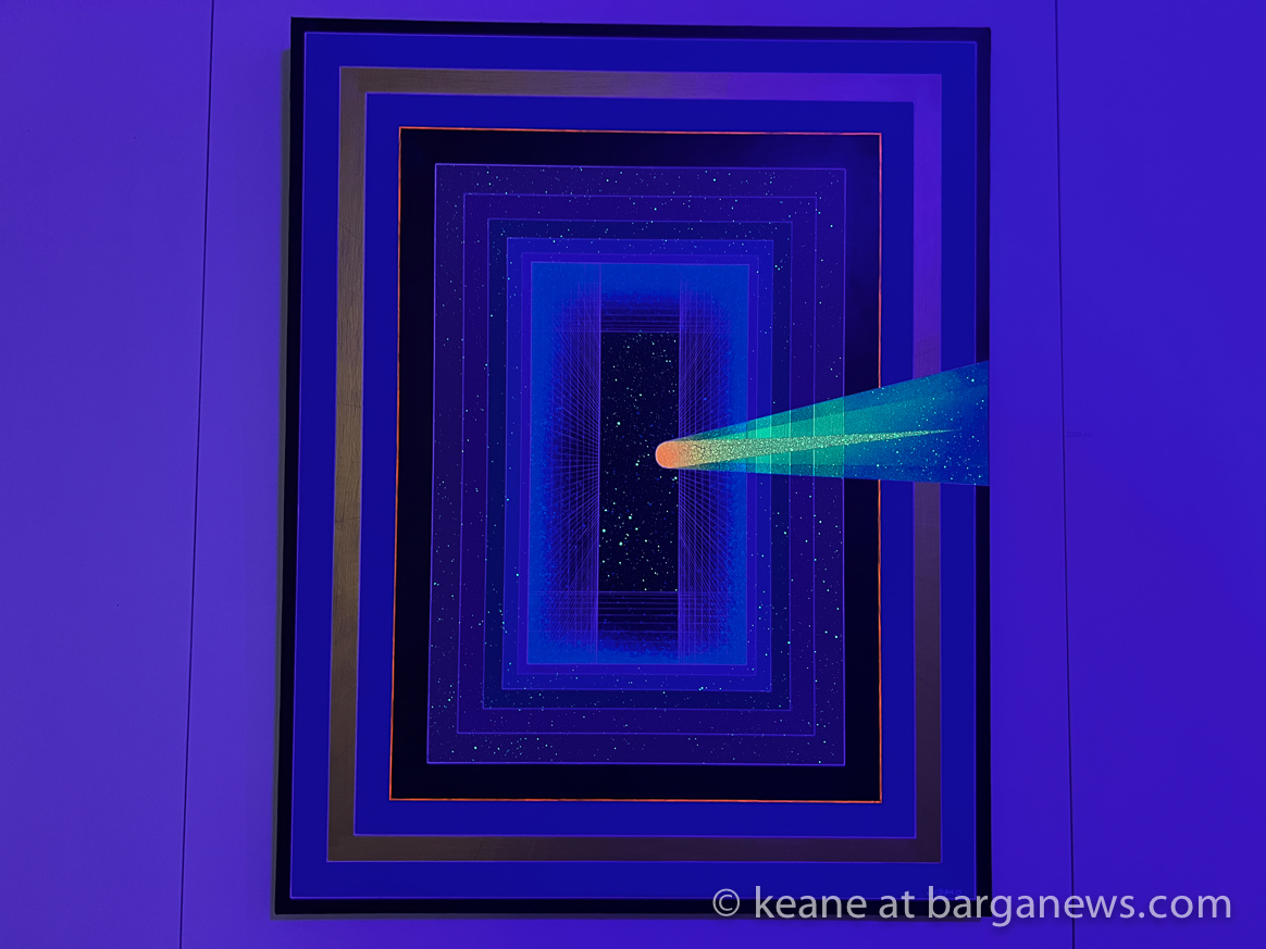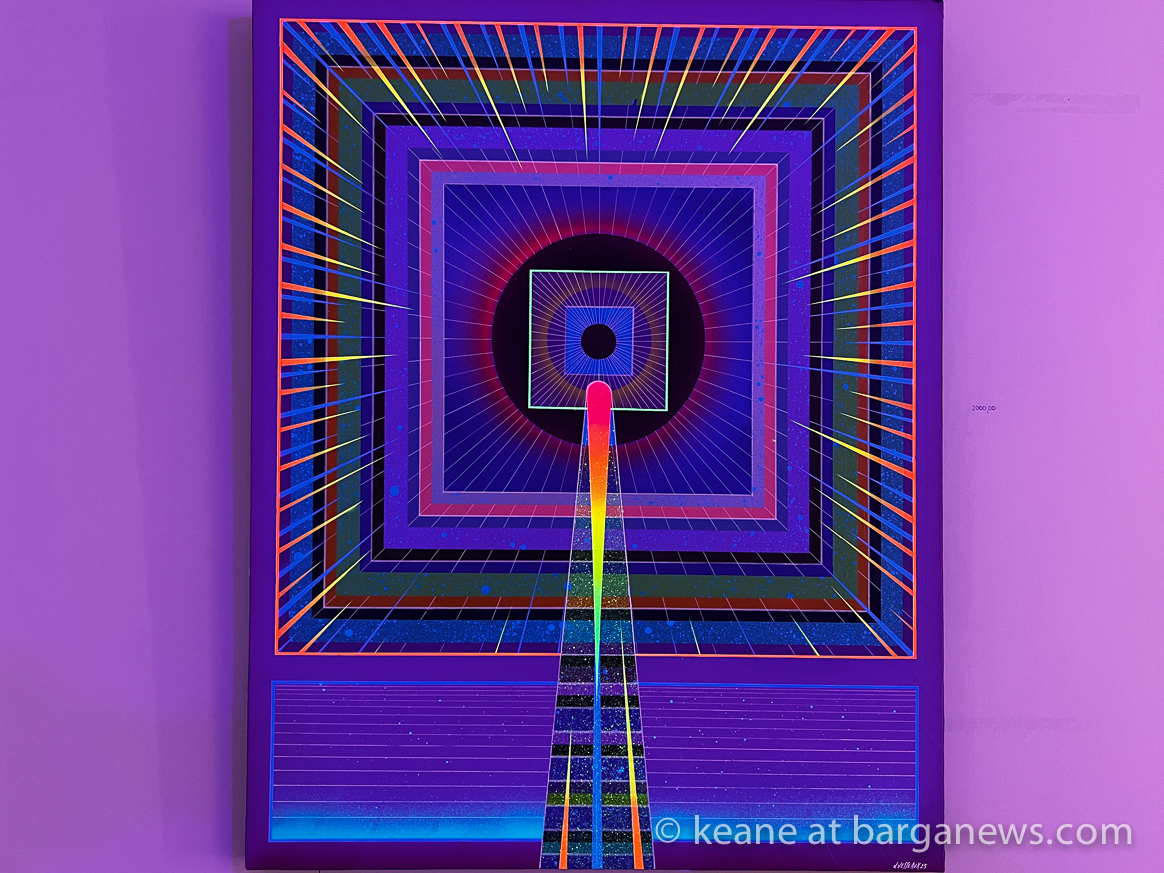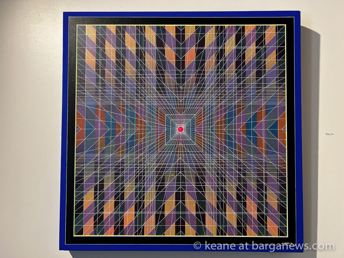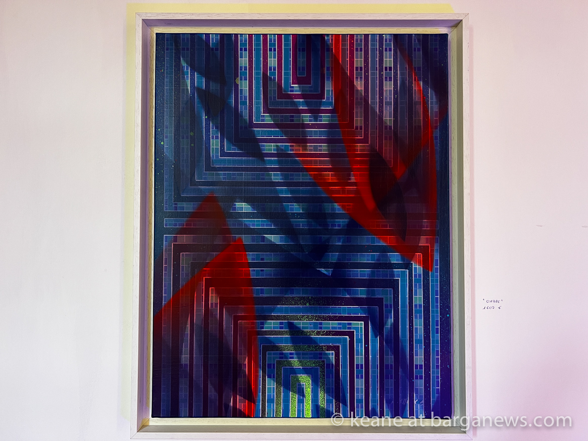 In his work, Ludovic Vesseaux transports the viewer into an optical illusion effect, combining geometric shapes and colors in a play of light and waves with cosmic values. – Jean-Paul Andrieux