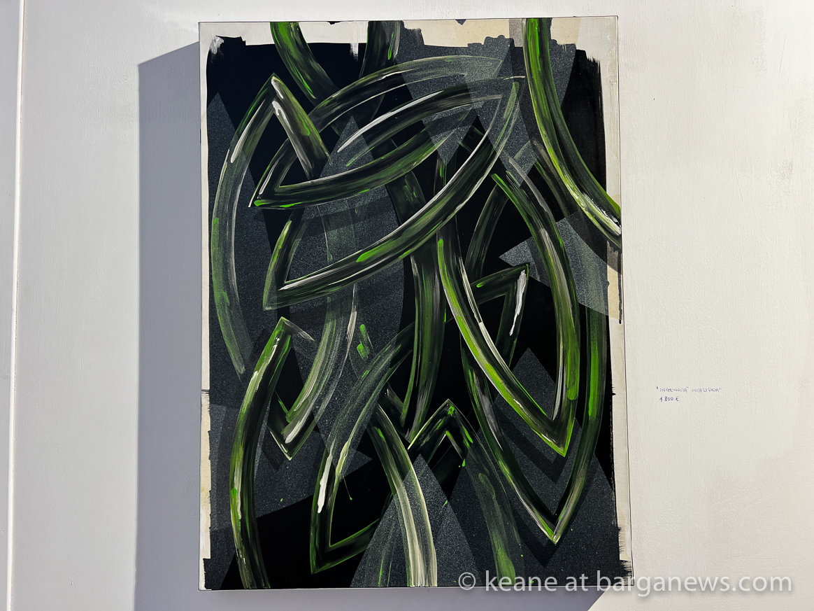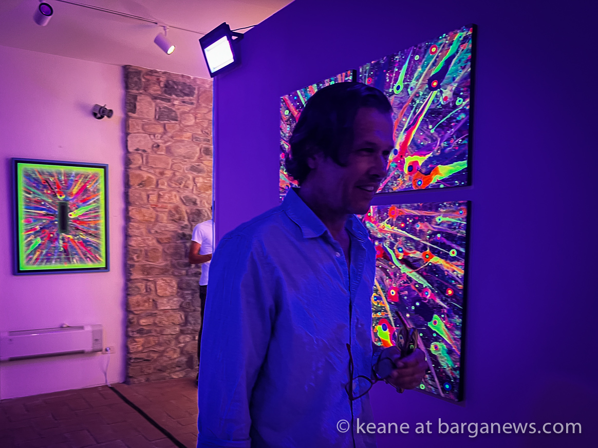 Nel suo lavoro, Ludovic Vesseaux trasporta lo spettatore in un effetto di illusione ottica, combinando forme geometriche e colori in un gioco di luci e onde con valori cosmici. – Jean-Paul Andrieux