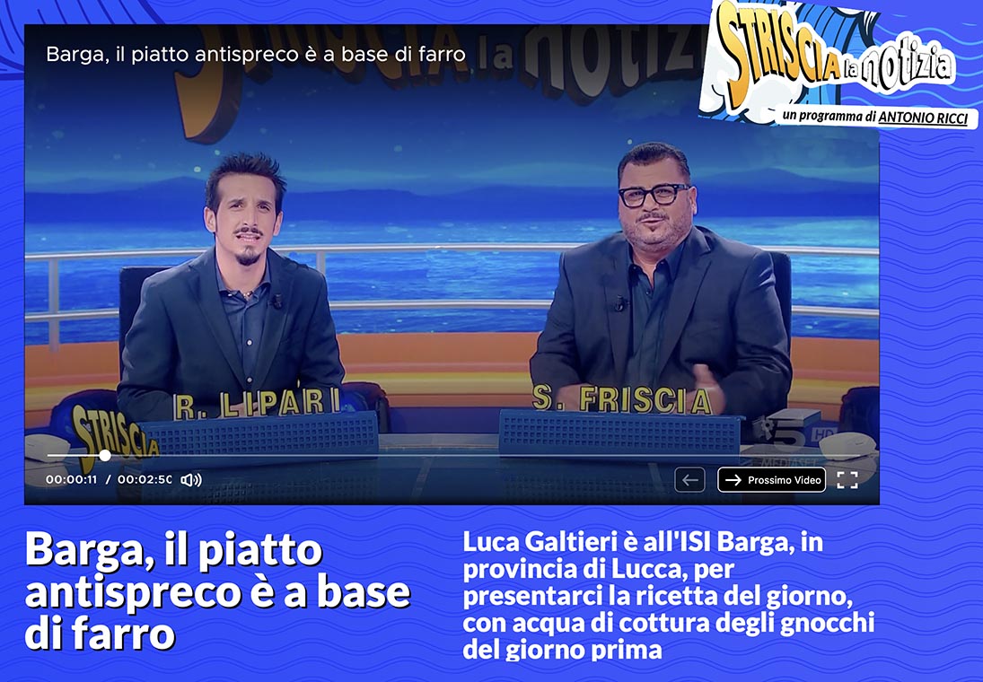 Sabato 28 Settembre è andato in onda su Striscia La Notizia su Canale5 il servizio di Luca Galtieri girato all’ISI Barga. L’inviato di Striscia si occupa da tempo di spreco alimentare, realizzando ricette in grado di eliminare gli scarti in cucina.