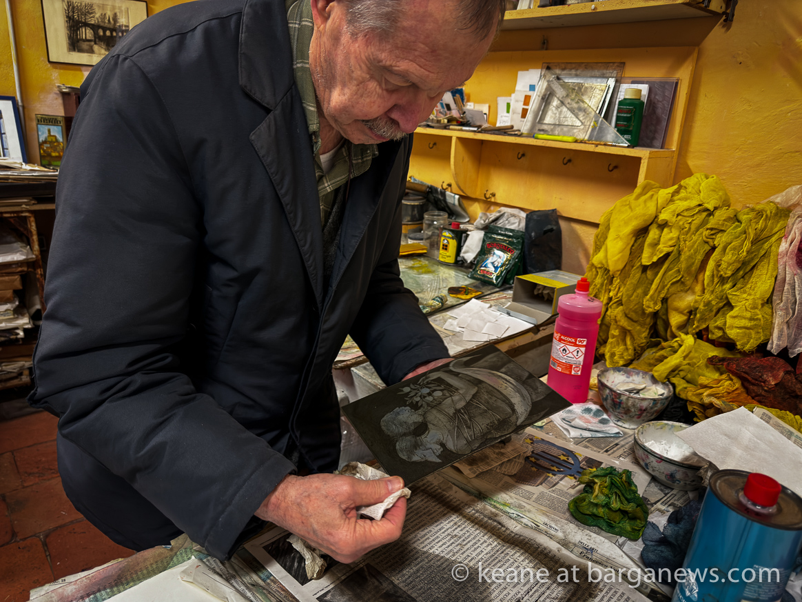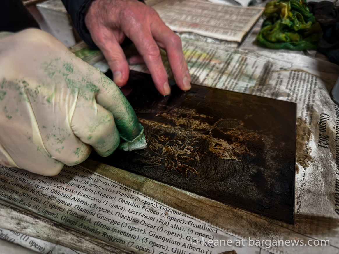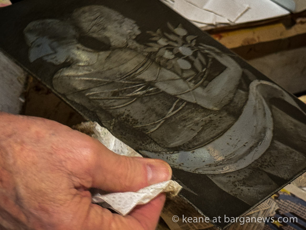 Swietlan Kraczyna printing from a 35 year old plate in Barga