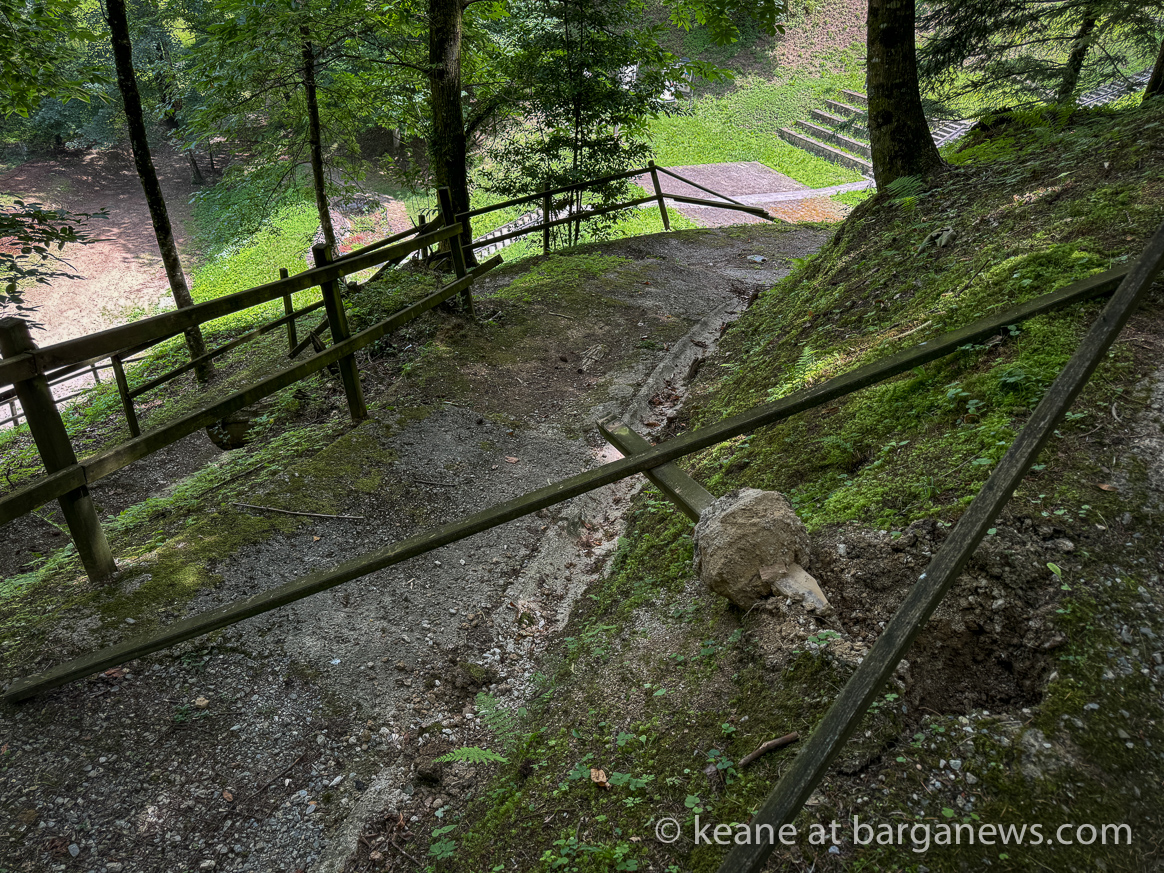 Qualcuno ieri ha preso tempo per passeggiare attraverso Parco Buozzi appena fuori Barga Vecchia e ha abbattuto e distrutto alcune delle recinzioni in legno che proteggono le persone dal cadere su alcuni dei ripidi pendii e discese nel parco.