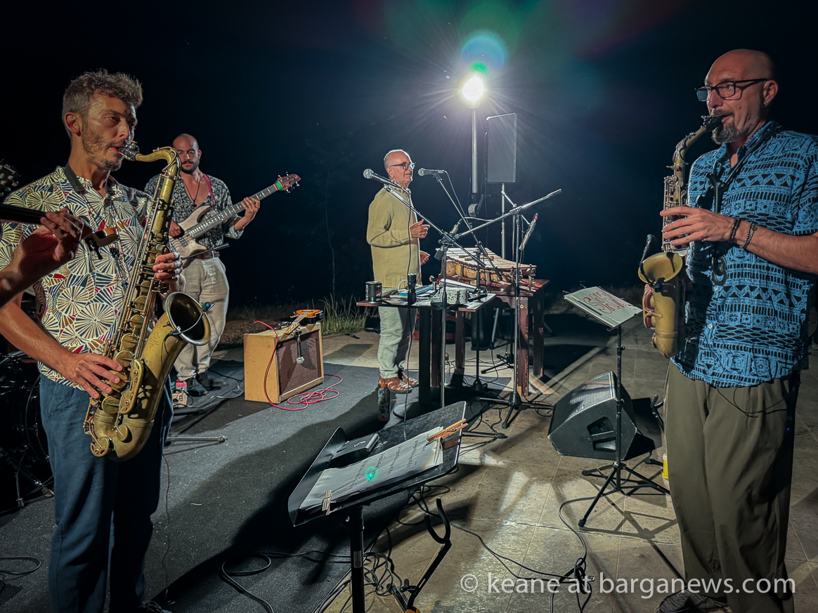 Participants in the evening included: Marco Martinelli on drums, Matteo Moscardini on bass, Zeno Marchi on guitar, Stefano Giannotti on vocals/banjo/percussion, Francesco Felici on saxophone, Francesco Carmignani on violin, and Renzo Cristiano Telloli.