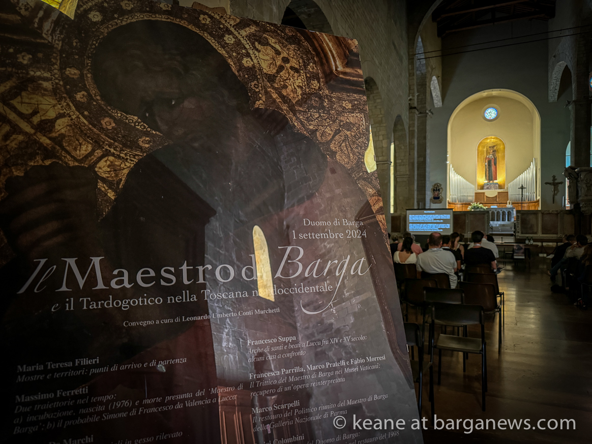 The day began with welcoming remarks from Barga’s Mayor Caterina Campani and the Archbishop of Pisa, S. E. Giovanni Paolo Benotto followed by an introduction by Leonardo Umberto Conti Marchetti, the event’s curator and moderator. Notable speakers included Maria Teresa Filieri, who reviewed art history studies on early 15th-century Lucca, and Massimo Ferretti, who shared new insights into the reconstruction of the Maestro’s work.