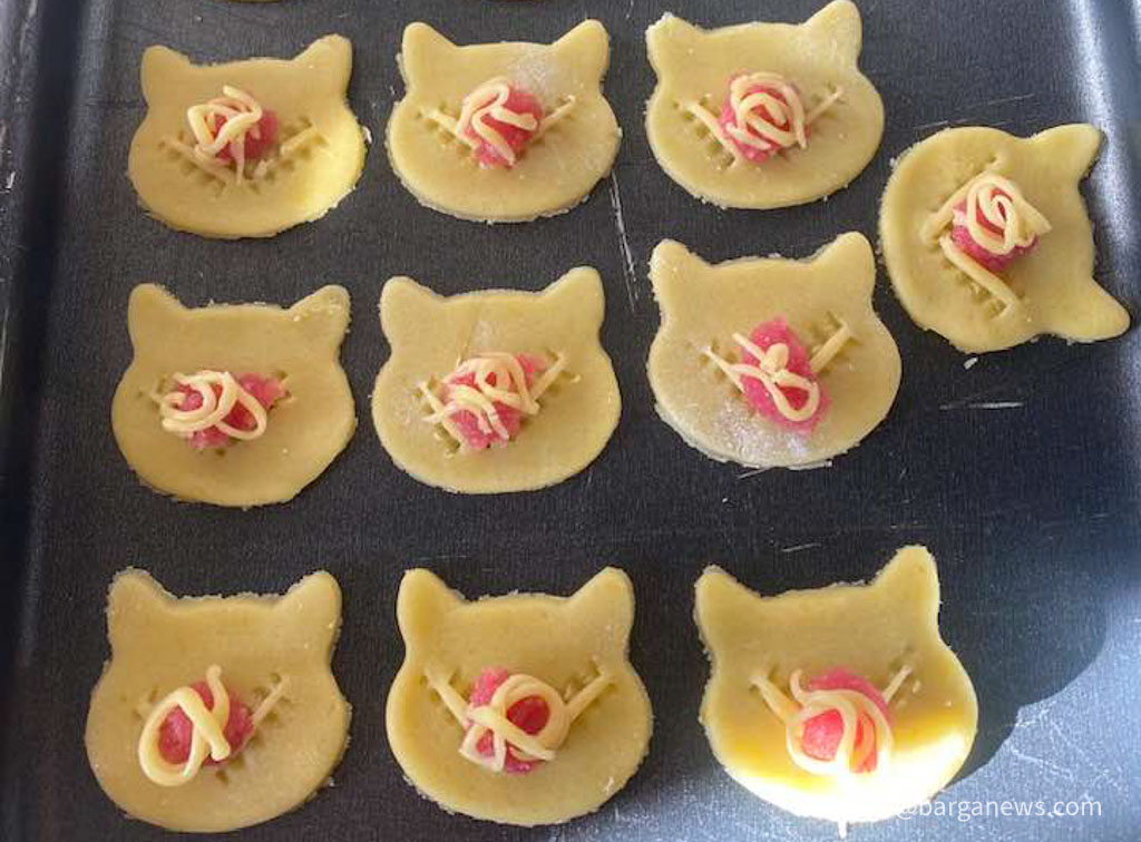 Una volta che l’impasto si è riposato, stendetelo con un mattarello fino a ottenere uno spessore uniforme. Ritagliate forme a piacere—stelle, cuori o figure festive sono ideali. Utilizzate pinzette di metallo per pizzicare motivi decorativi lungo i bordi di ogni biscotto, lasciando spazio al centro per il ripieno di marzapane. Mettete una cucchiaiata di marzapane al centro e decorate i biscotti con ulteriori ritagli di pasta a forma di foglioline.