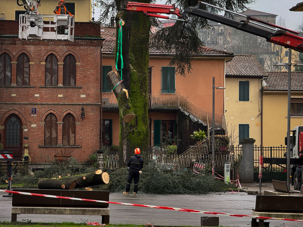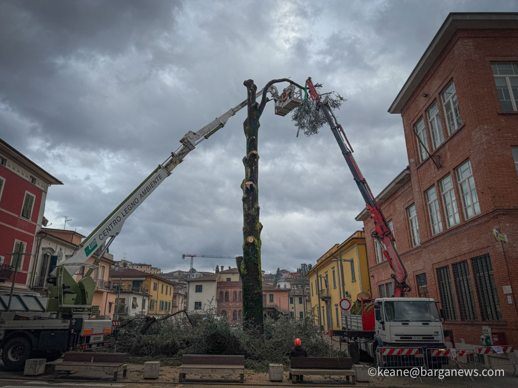 Per oltre un secolo, maestosi cedri hanno vegliato sulla piazza di Barga, le loro imponenti chiome offrendo ombra a generazioni di residenti e visitatori. Piantati all’inizio del secolo scorso, erano da tempo un elemento distintivo della piazza, con le loro radici profonde intrecciate alla storia di una città che fa della tradizione il suo orgoglio (articolo con immagini qui) Ma questa settimana, il paesaggio è cambiato per sempre. Gli alberi, ritenuti malati e pericolosi, sono stati abbattuti dalle motoseghe del Centro Legno Ambiente, una decisione che ha scatenato un acceso dibattito, una forte reazione emotiva e una più ampia discussione su responsabilità, sicurezza e conservazione del patrimonio naturale di Barga.