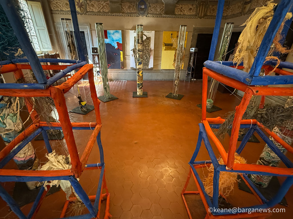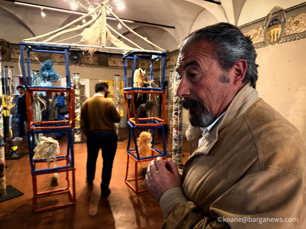 The evening concluded with the inauguration of Roberto Costa’s exhibition in tPalazzo Pancrazi in Barga Vecchia . Running until the 26th April, the exhibition showcased striking works that blended environmental consciousness with artistic creativity.