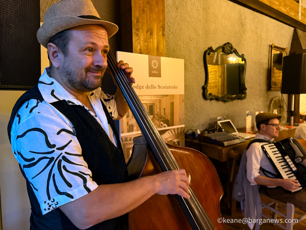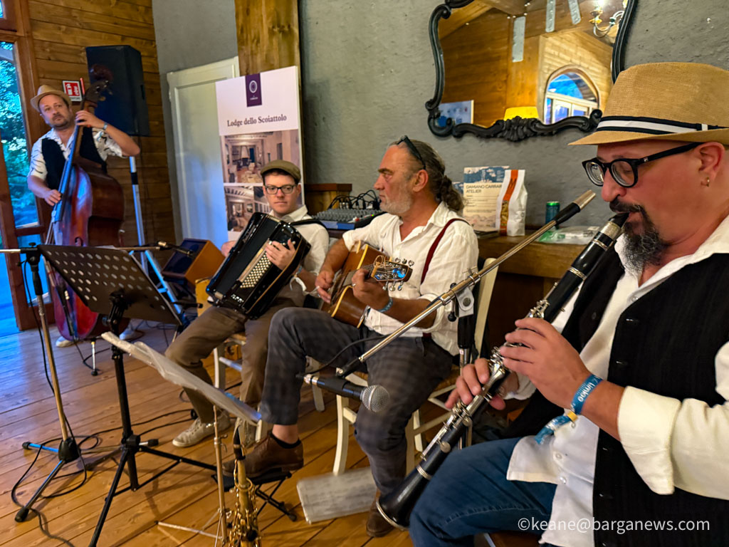 La loro musica — ricca di mandolino, sax, fisarmonica e contrabbasso — scorreva tra una portata e l’altra come il vino: mai invadente, sempre presente.