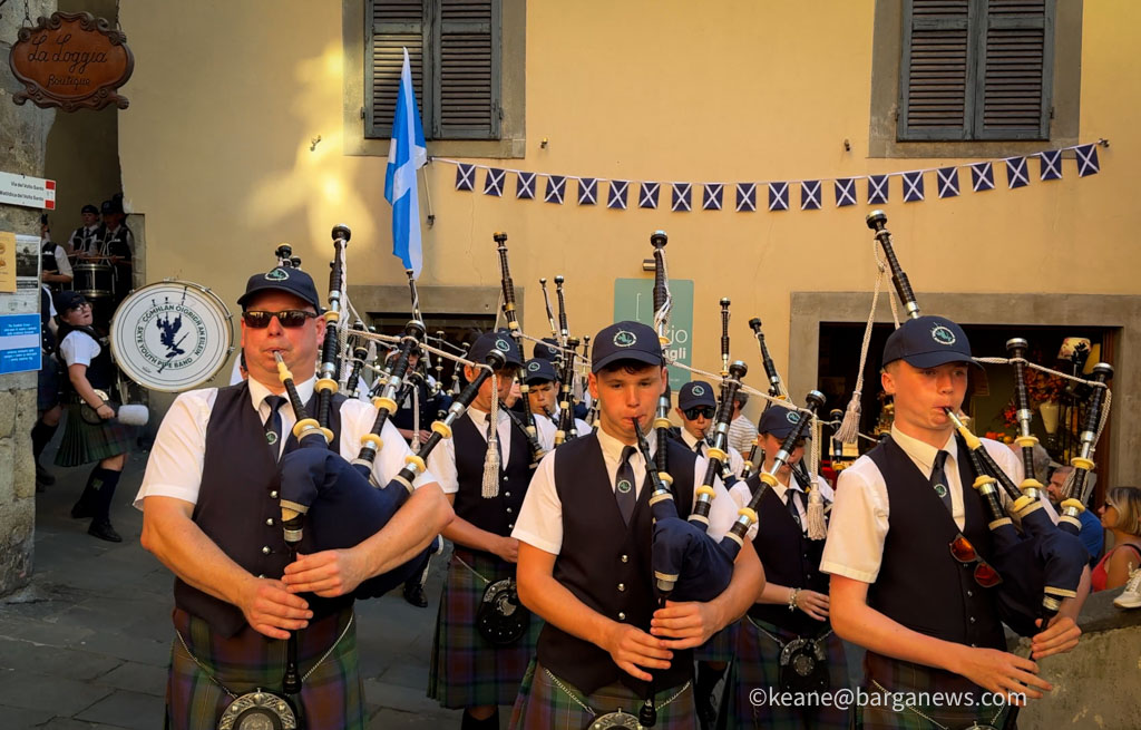Tunes rose and fell against Barga’s Romanesque skyline, a meeting of Highland cadence and Tuscan stone that has become a signature of the city’s enduring links with Scotland.
