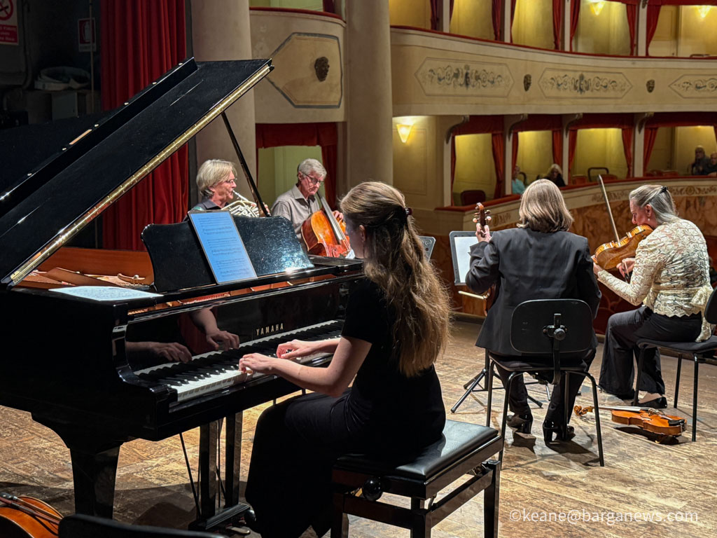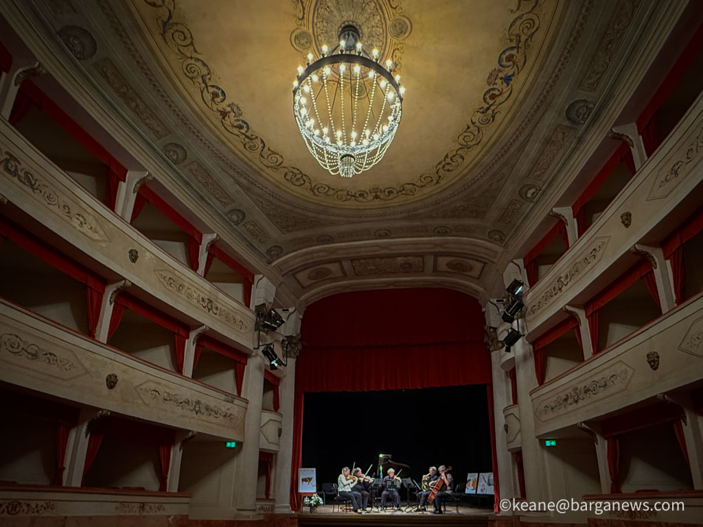 For years they had playfully called themselves the “Musicians of Molazzana,” but on stage they appeared under their true name — Ensemble 595. Their long-held wish to perform in Barga finally came true when, with the help of the Scuola di Musica and the support of the Comune, they brought their chamber music to the Teatro dei Differenti.