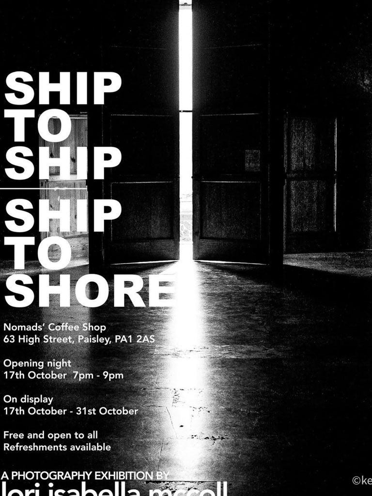 Ten years on from its initial exhibit in Barga, Lori has been showcasing a condensed collection of her project “Ship to Ship, Ship to Shore” at the Nomads’ Coffee Shop in Paisley, Scotland.