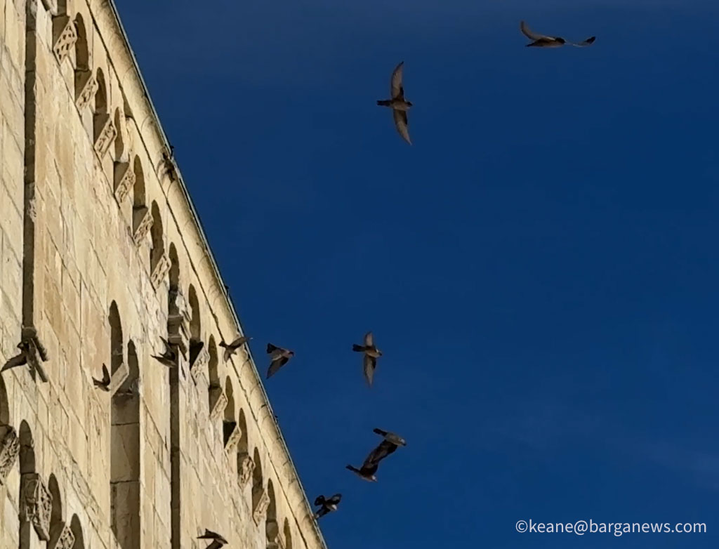 Il Duomo, silenzioso e immobile da secoli, diventa un rifugio temporaneo — un punto di sosta per questi instancabili viaggiatori che hanno già attraversato montagne e valli. La loro presenza porta per un istante vitalità alle antiche mura, un incontro tra il ritmo della migrazione e la quiete della pietra.