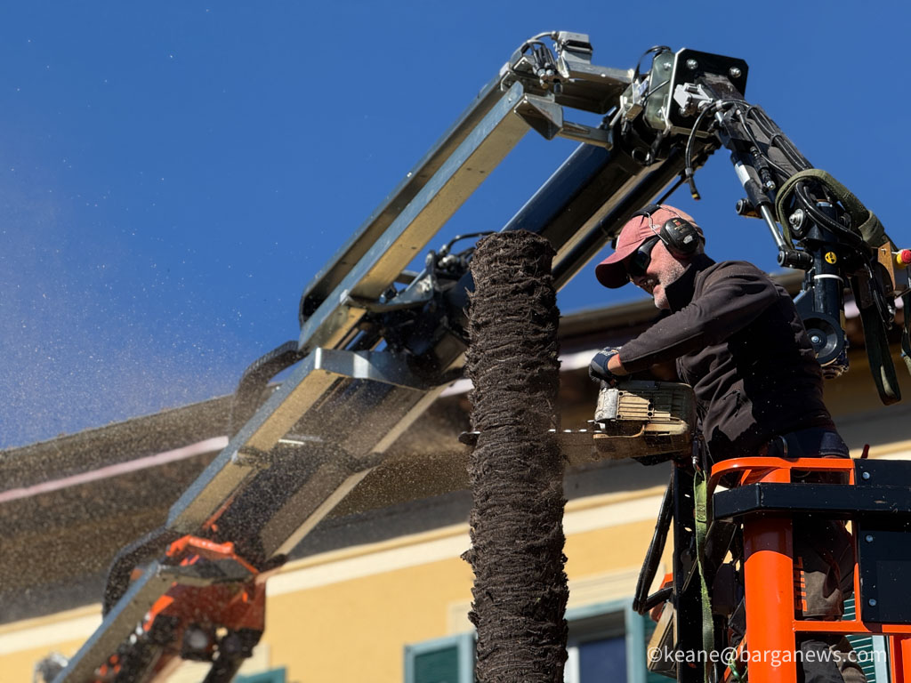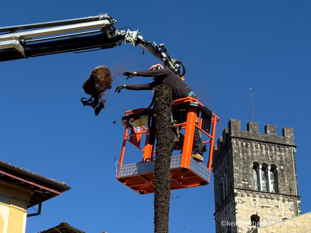 After Infestation by the Red Palm Weevil The main road leading up to Barga Vecchia and the Duomo was temporarily closed this morning as a mobile crane was brought in to remove a 13-metre-tall palm tree that had been growing in the gardens just below the cathedral.