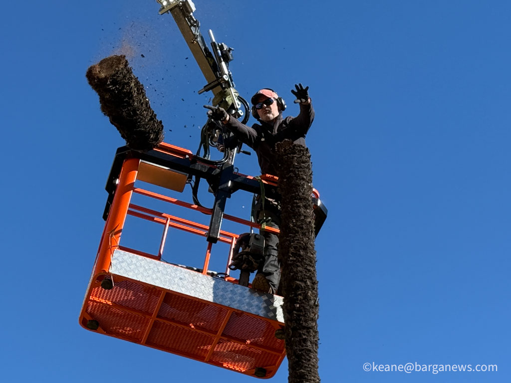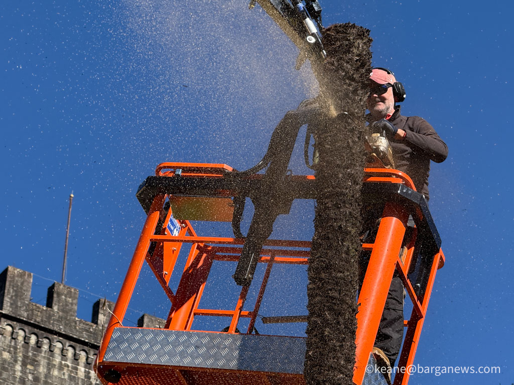 Over recent months, the tree had been steadily destroyed by the Paysandisia archon, and, for safety reasons, had to be cut down and taken away. Working alone from a raised platform, a tree surgeon used a chainsaw to cut through the decaying wood, and it only took an hour or so to bring the entire tree down.