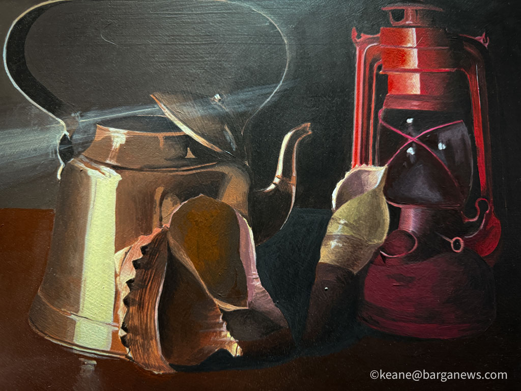 Un’altra influenza fondamentale è Caravaggio, il cui linguaggio drammatico e la cui palette intensa hanno lasciato un segno evidente nel percorso dell’artista. Mazzucchi dipinge principalmente con colori acrilici, un mezzo che predilige per la rapidità e la versatilità, qualità che gli permettono di catturare la luce e la forma con immediatezza.
