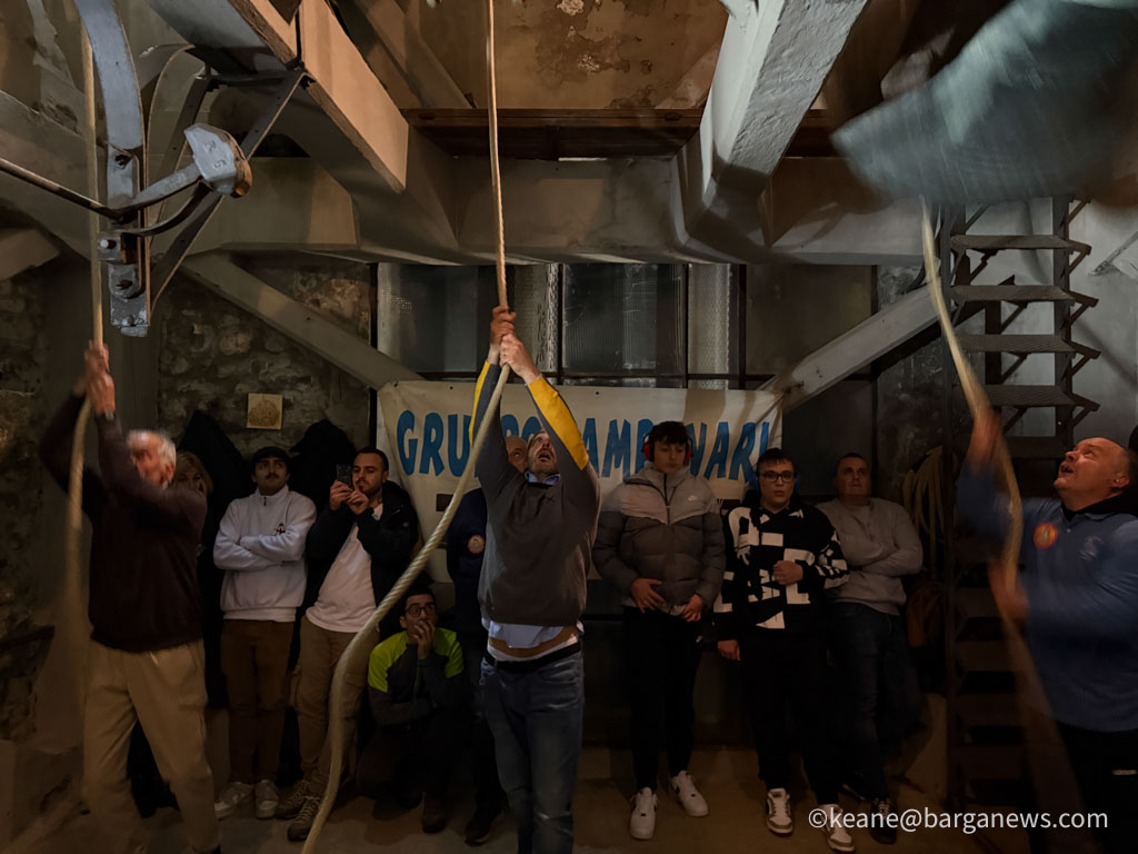 From nine o’clock until the stroke of 10 o’clock the three huge bells at the top of the Duomo tower were kept in motion by a team of bell ringers – the Campanari of Barga.