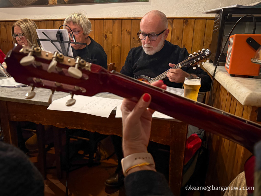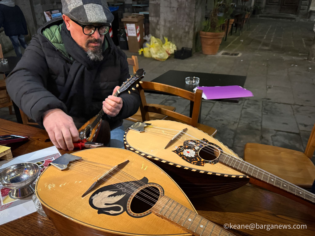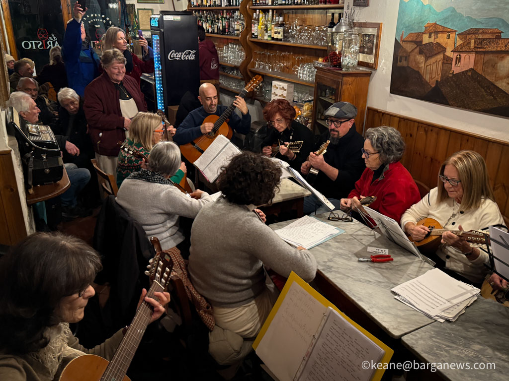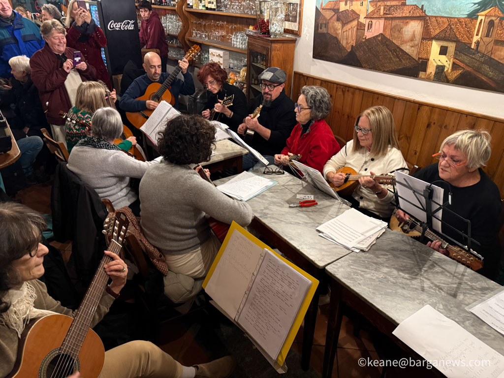 This afternoon in Barga Vecchia, six mandolin players and seven guitarists temporarily transformed Barga’s unofficial cultural centre — Da Aristo — into an open rehearsal space. Instruments were unpacked, chairs rearranged and, for a while, the familiar bar became a place of concentrated practice and shared sound.
