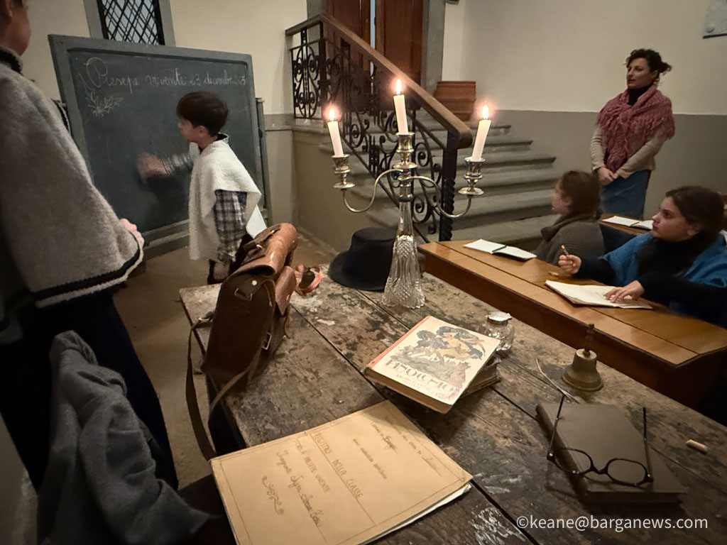 Man mano che attraversano Barga Vecchia, si fermano e si riposano fuori dalle cantine di mugnai, scalpellini, persone che fanno salsicce, falegnami, carbonai e calzolai, tutti vestiti con abiti di inizio ’900.