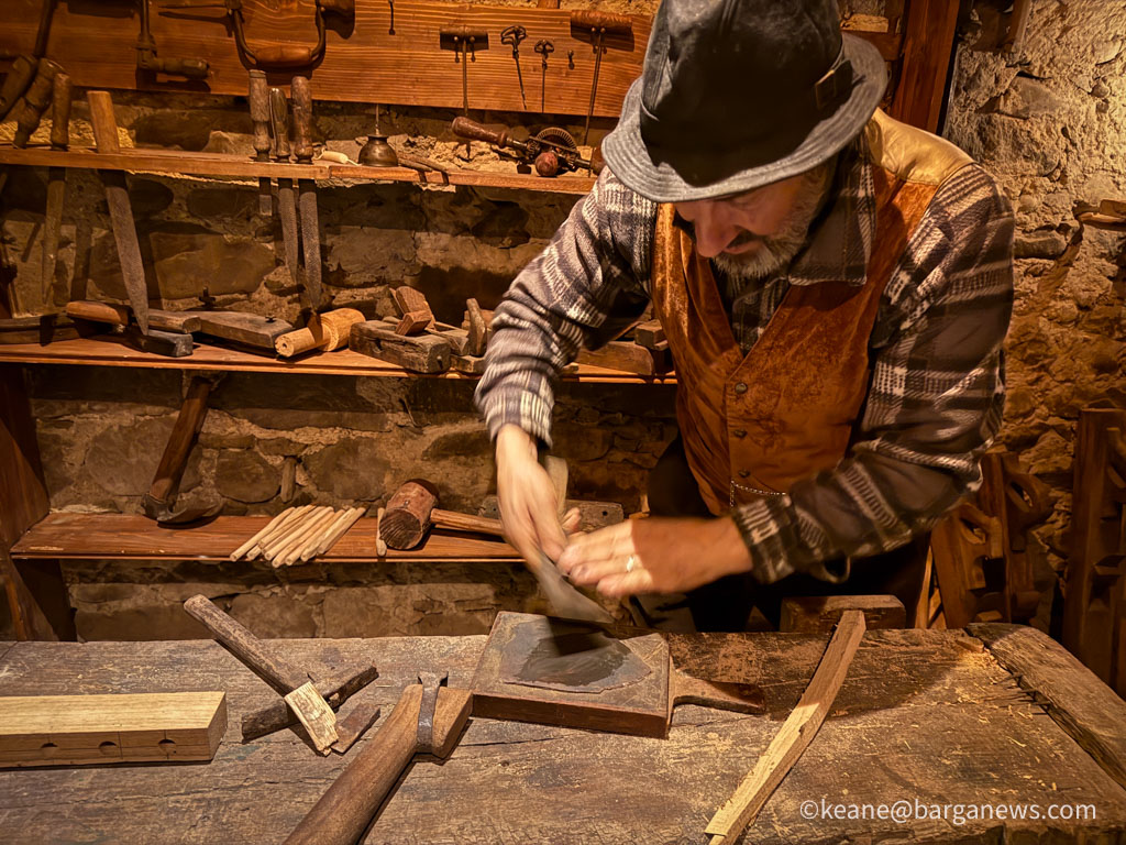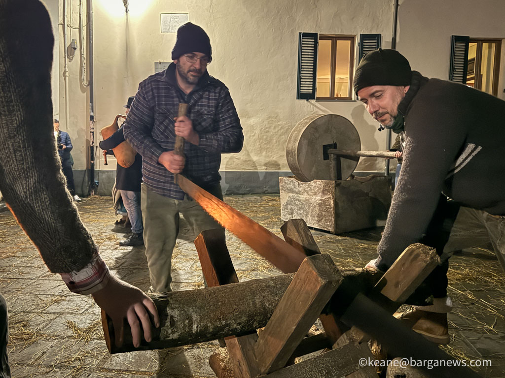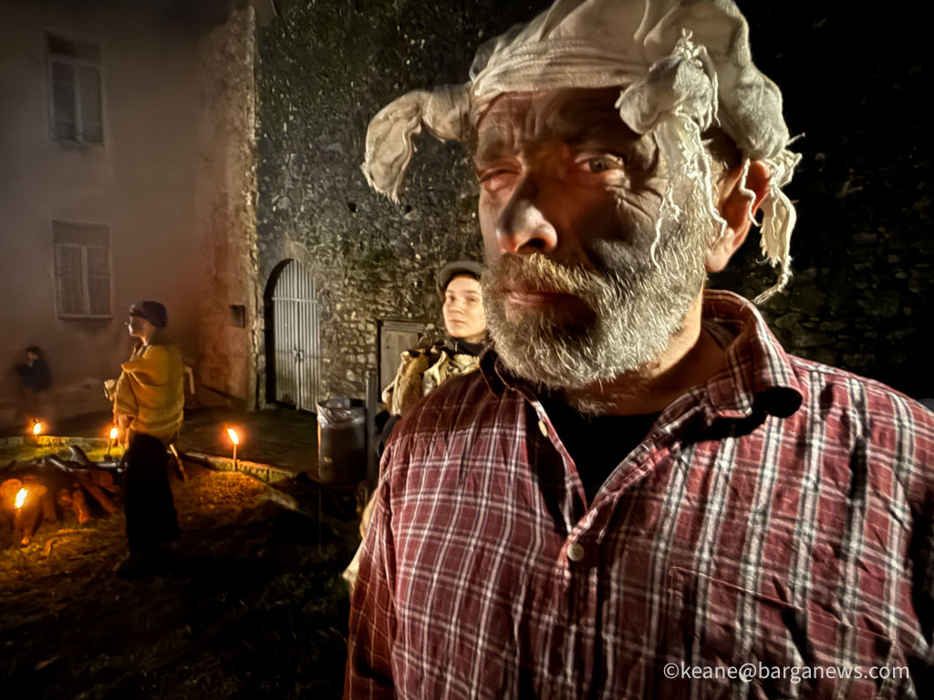 As they then make their way through Barga Vecchia, they stop and rest outside the cellars and cantinas of millers, stonemasons, people making sausages, carpenters, charcoal makers and cobblers all dressed in clothes from the turn of the 1900′s.