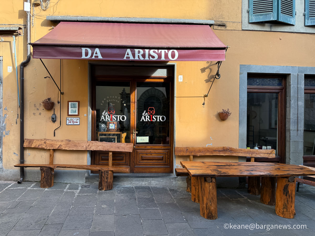 Il centro culturale non ufficiale di Barga Vecchia – il bar Da Aristo – ha appena aggiunto un nuovo punto di osservazione su Piazza Salvo Salvi: un tavolo e delle panche costruiti a mano.