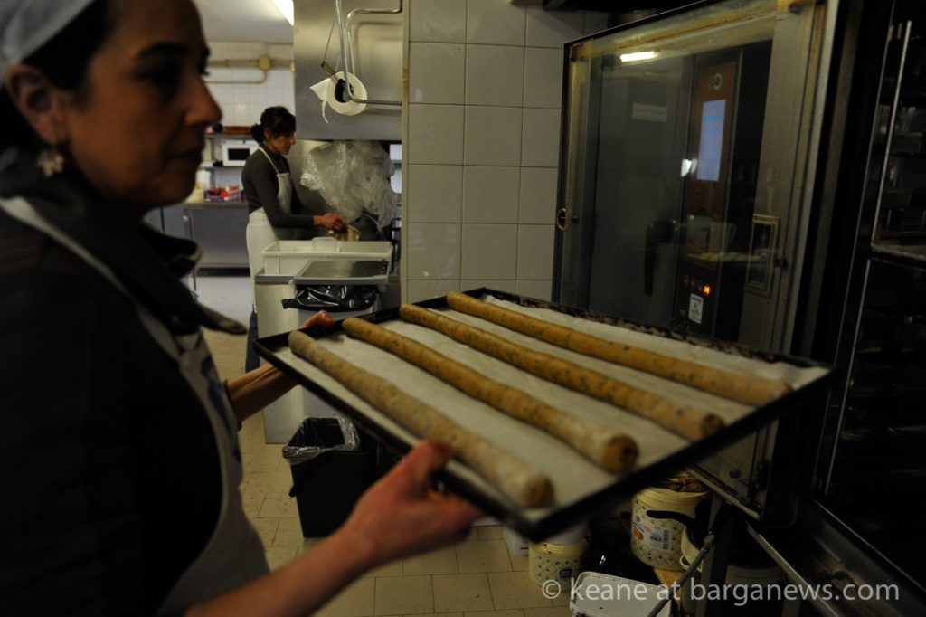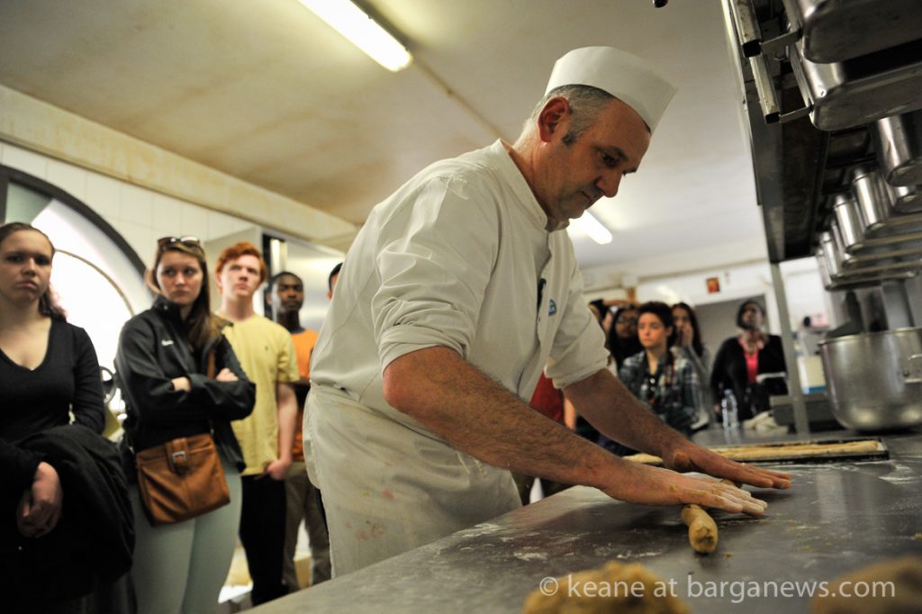 Apart from a brief visit to the obvious places that a visitor to Barga would go to get a feeling for the city – through Barga Vecchia stopping at Da Aristo’s, the unofficial cultural centre of Barga and then up to the Duomo, the students spent the bulk of their time down in Barga Giardino in the kitchens of the Fratelli Lucchesi where Paolo Lucchesi and his team were on hand to show the students some of the secrets of preparing and baking their prize winning biscuits and cakes using chestnut flour.