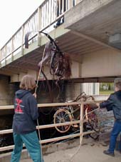 Some of the bikes have been under the water for more than 10 years and are not in that good condition. Others have only been under the water for a number of months and could actually be ridden away from the scene. Some of the people involved in the diving project back to main bike index