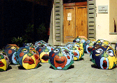 balls were taken outside of the gallery and set free to roll away with