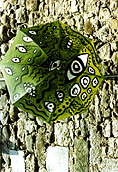 from an almost aggressive object, a rolled up umbrella to a passive,