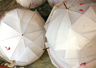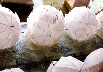The 100 sperm and egg umbrellas were originally exhibited at Vercelli and then moved to Treviso Italy and finally to Zug Switzerland